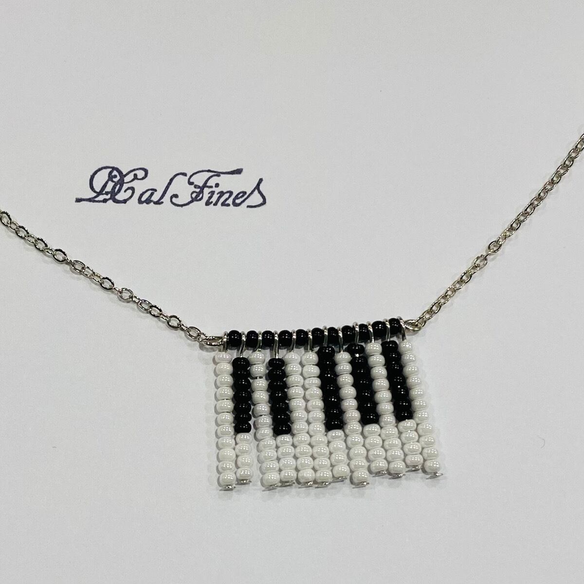 鍵盤ネックレスは、音楽の情熱とファッション性を見事に組み合わせたアイテムです♪ オフホワイトとブラックのビーズで丁寧に手作りされたこのネックレスは、シンプルでありながらも目を惹く存在感があります。